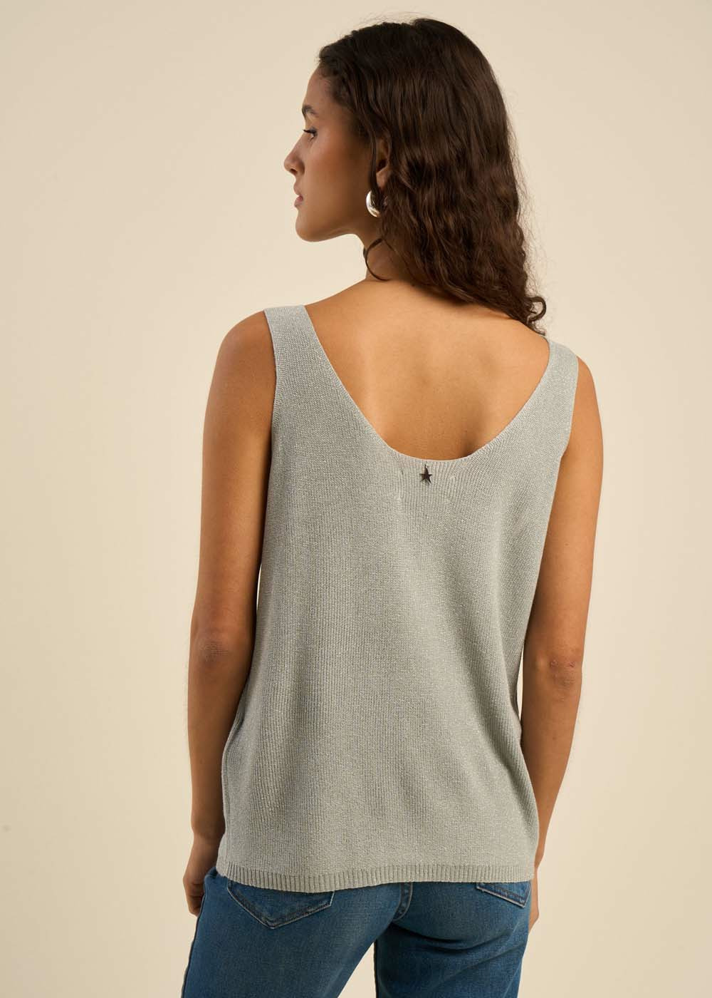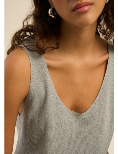 Laissez-vous charmer par le débardeur DIBBA, un modèle moderne et versatile qui se distingue par son encolure ronde et ses bretelles délicates. Confectionné dans une maille scintillante grâce à l'ajout de fibres métalliques, il illumine vos tenues d'une touche de brillance subtile. Sa coupe ample et actuelle en fait un allié parfait pour créer des looks aussi bien décontractés que plus sophistiqués, selon vos envies.