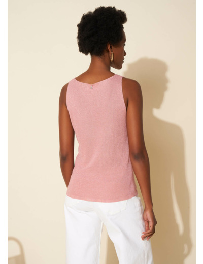 Le DIBA est un débardeur à encolure ronde fabriqué dans une maille scintillante grâce à l'utilisation de fibres métallisées. Avec une coupe moderne et ample il est adapté aussi bien pour des tenues décontractées que pour des looks plus chics