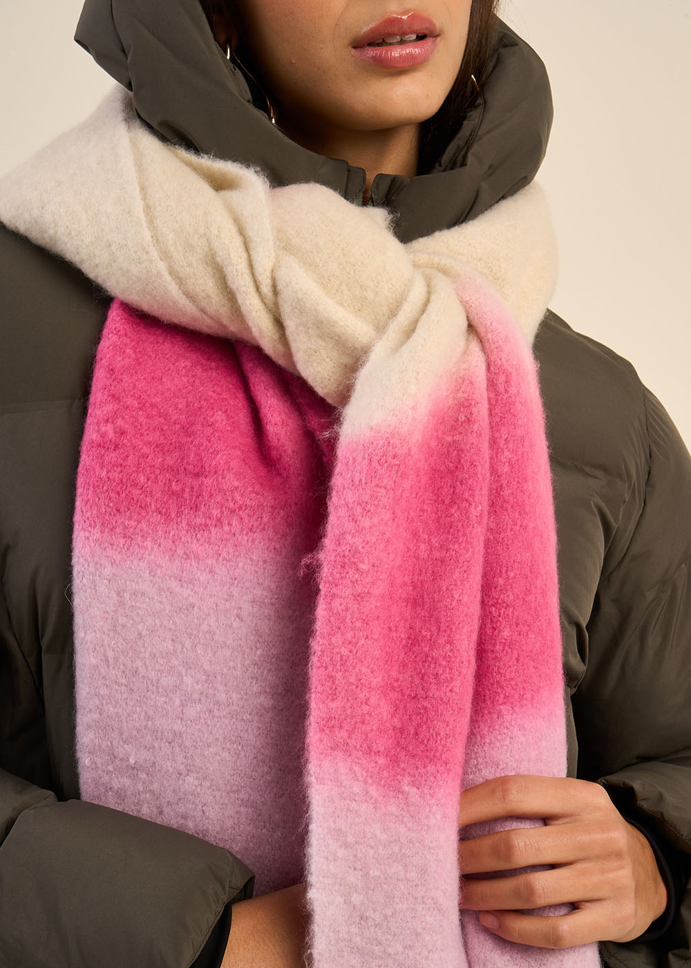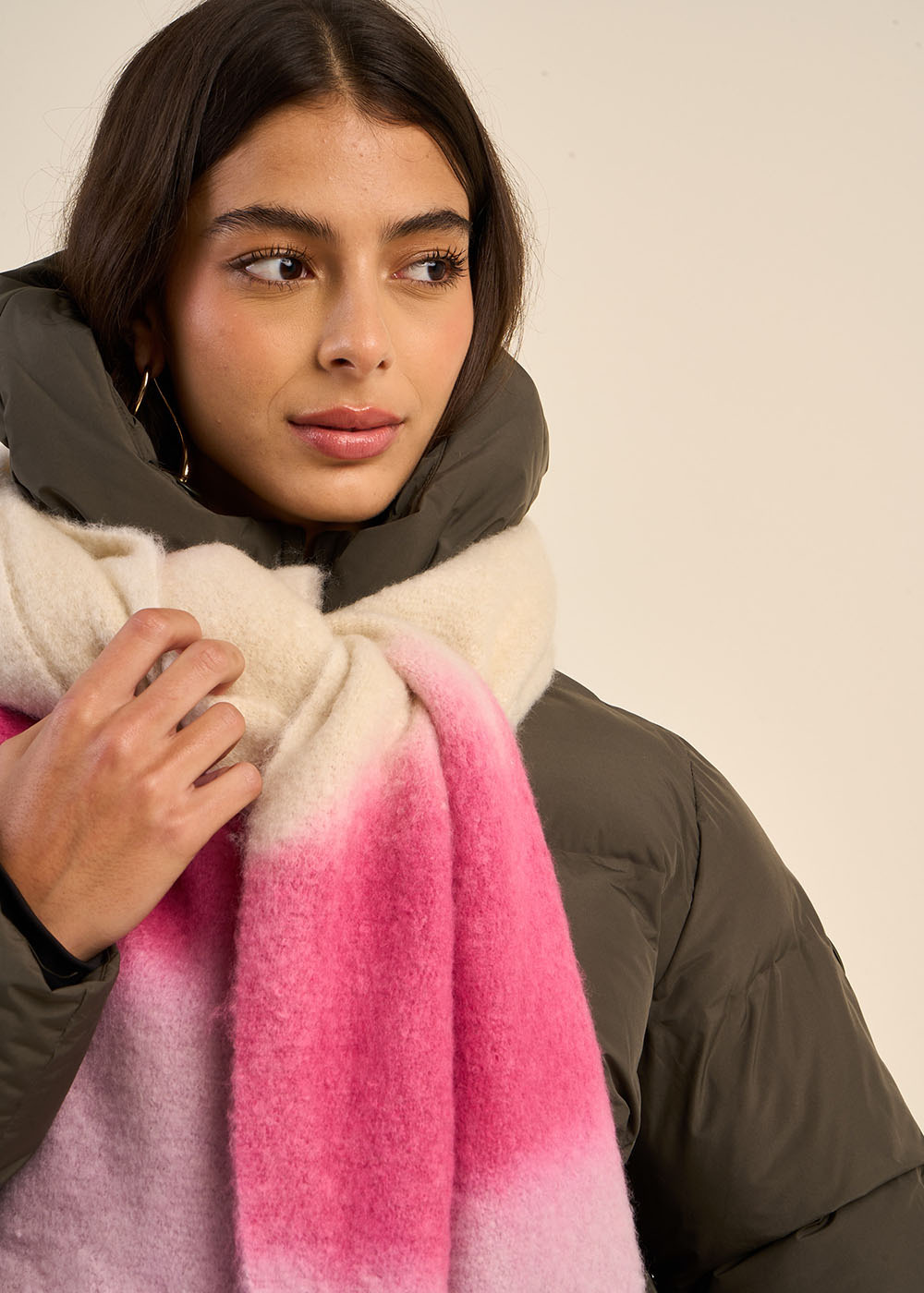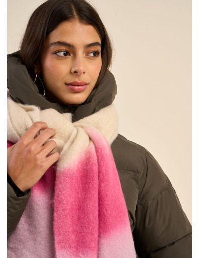 L’écharpe ELONIE à franges tricolores présente un effet deep dye, ajoutant une touche de sophistication et de modernité à votre tenue. Ses couleurs vibrantes et ses franges élégantes en font un accessoire chic et tendance, parfait pour rehausser vos looks tout en vous offrant chaleur et confort.
