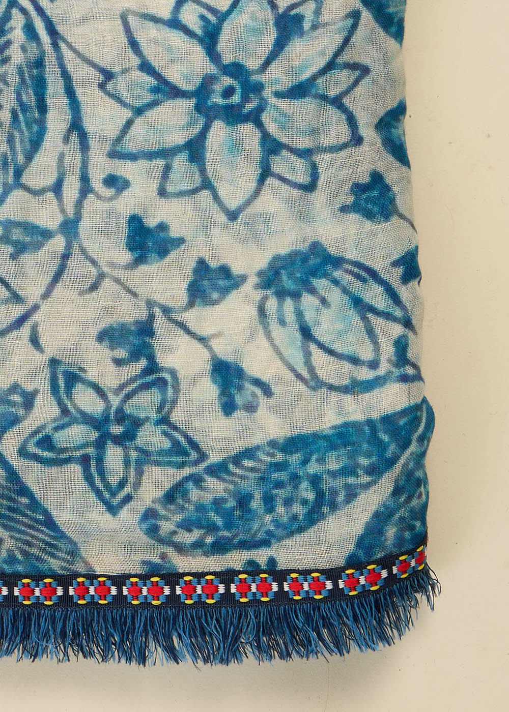 Le foulard imprimé ELFIE, avec ses magnifiques franges tout autour, ajoute une touche de charme et d'élégance à votre tenue. Avec ses couleurs subtiles et son design raffiné, il est l'accessoire parfait pour rehausser votre look.