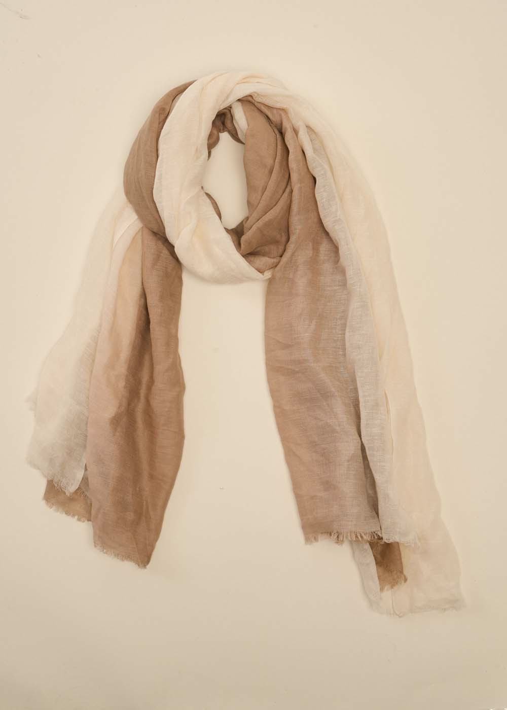 Le foulard ESIN présente un mélange harmonieux de nuances dégradées, passant subtilement d’un ton sombre à un ton plus clair. Son design uni lui confère une élégance intemporelle, apportant une touche de raffinement et de subtilité à votre tenue.