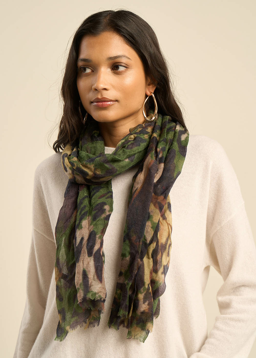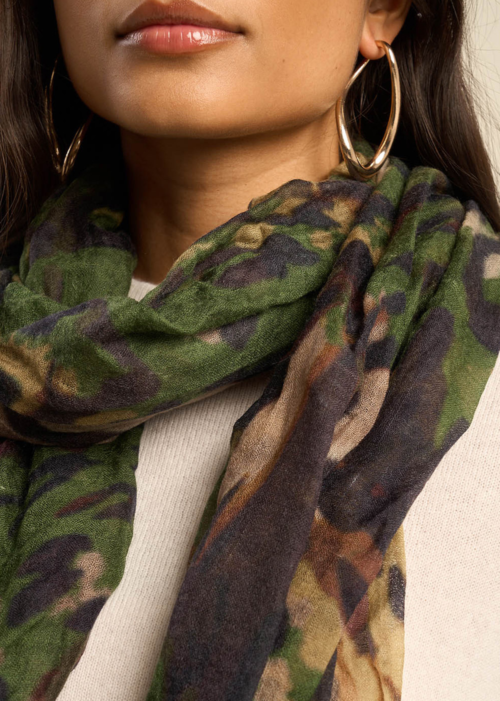 Le foulard EMELDA se distingue par son délicat imprimé, apportant une touche d'élégance et de sophistication à toute tenue. Son design raffiné et ses motifs subtils en font un accessoire incontournable pour celles qui cherchent à ajouter une note de distinction à leur style.