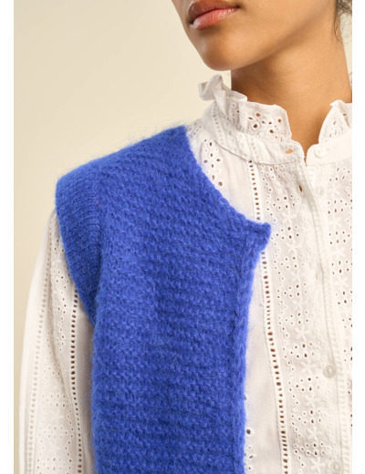 Le gilet court GOTANA dépourvu de manches confectionné en mohair et alpaga est l'incontournable de la saison pour un style citadin. Disponible dans plusieurs coloris, il s'intègre parfaitement à votre garde-robe. Idéal au quotidien il peut être porté avec une chemise en dessous.