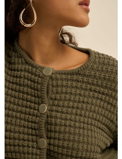 Découvrez le gilet GILARY, une pièce à la fois chic et féminine qui saura captiver votre style. Son col rond et ses manches longues offrent une silhouette élégante, accentuée par des boutons bijoux et des poches plaquées pour une touche de raffinement supplémentaire. Ce gilet polyvalent se marie parfaitement avec votre jean préféré ou par-dessus l'une de nos robes. Disponible en écru, marine et prune, il est confectionné dans un tricot fantaisie en coton mélangé, épousant délicatement votre silhouette. Optez pour le confort et l'élégance avec le gilet GILARY, parfait pour toutes les occasions.
