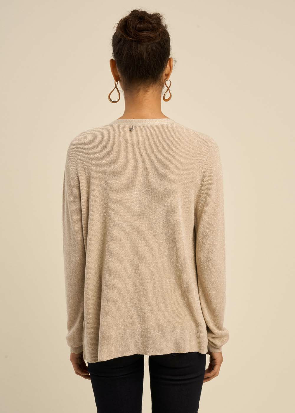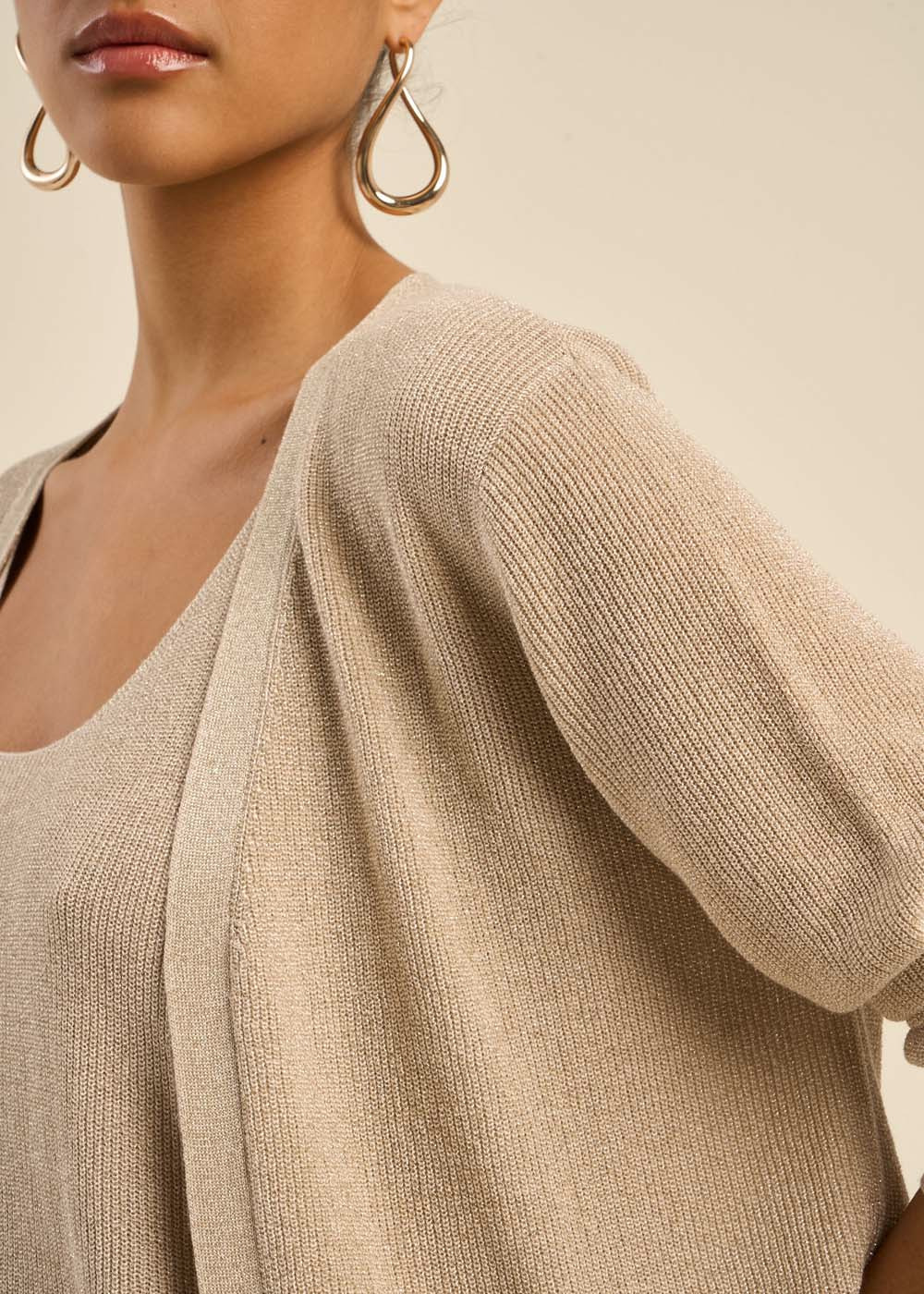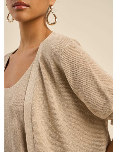 Laissez-vous séduire par notre gilet GALDIS. Confectionné avec des fibres métalliques, il ajoute une touche de brillance subtile à vos tenues tout en offrant confort et élégance. Avec ses manches longues et sa coupe droite, il se porte aisément par-dessus vos vêtements pour un style décontracté et raffiné. La matière douce et fluide assure un porté agréable tout au long de la journée, tout en vous apportant une légère touche de chaleur.