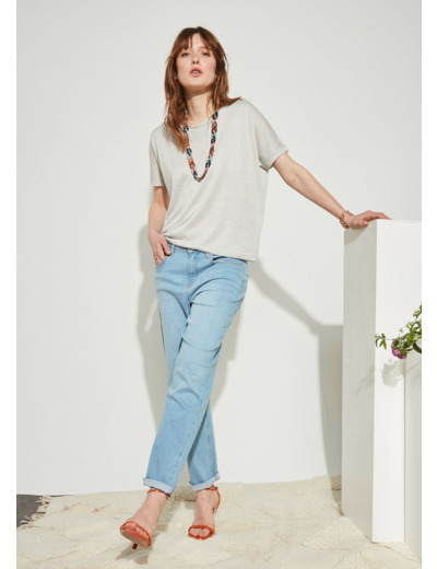 Le jean boyfriend BEN est l'une des pièces phares de la collection . Ce jean iconique à la coupe ample offre une aisance inégalée ainsi qu'un style casual chic maitrisé. Inspiré du vestiaire masculin le jean boyfriend BEN se porte taille basse. Les lignes droites de ce jean ample lui offrent un style décontracté. Jouant avec les codes d'un look unisexe le jean boyfriend BEN reste flatteur pour la silhouette et convient particulièrement aux morphologies en H. Un jean loose qu'on ne voudra plus quitter !