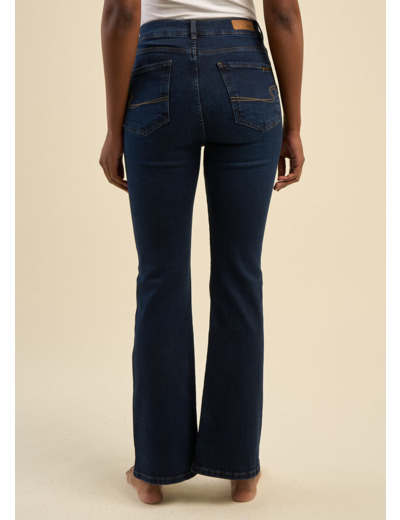Le jean FANNY, a une coupe boot cut et flare. Doté de 5 poches et d'une taille medium, il présente une jambe droite jusqu'au genou qui s'évase ensuite jusqu'en bas. Parfait pour allonger la silhouette, ce jean ajoute une touche vintage et décontractée à votre garde-robe.