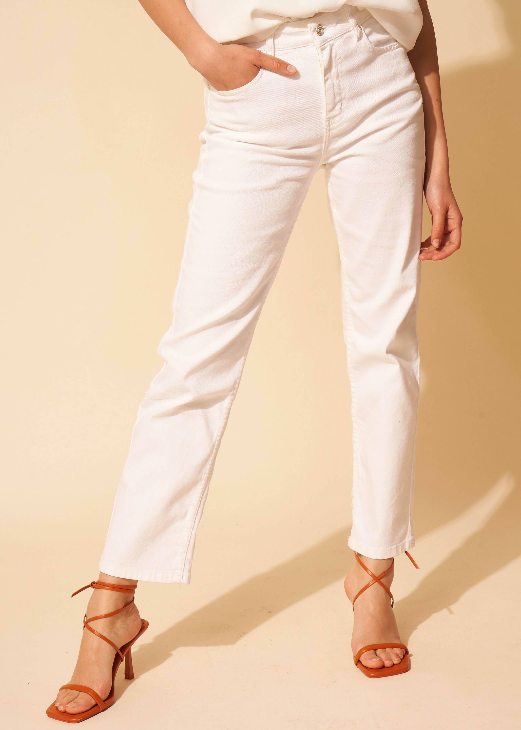 Le jean DEBBY adopte une coupe droite simple à porter. Il détient une taille haute et des poches plaquées.