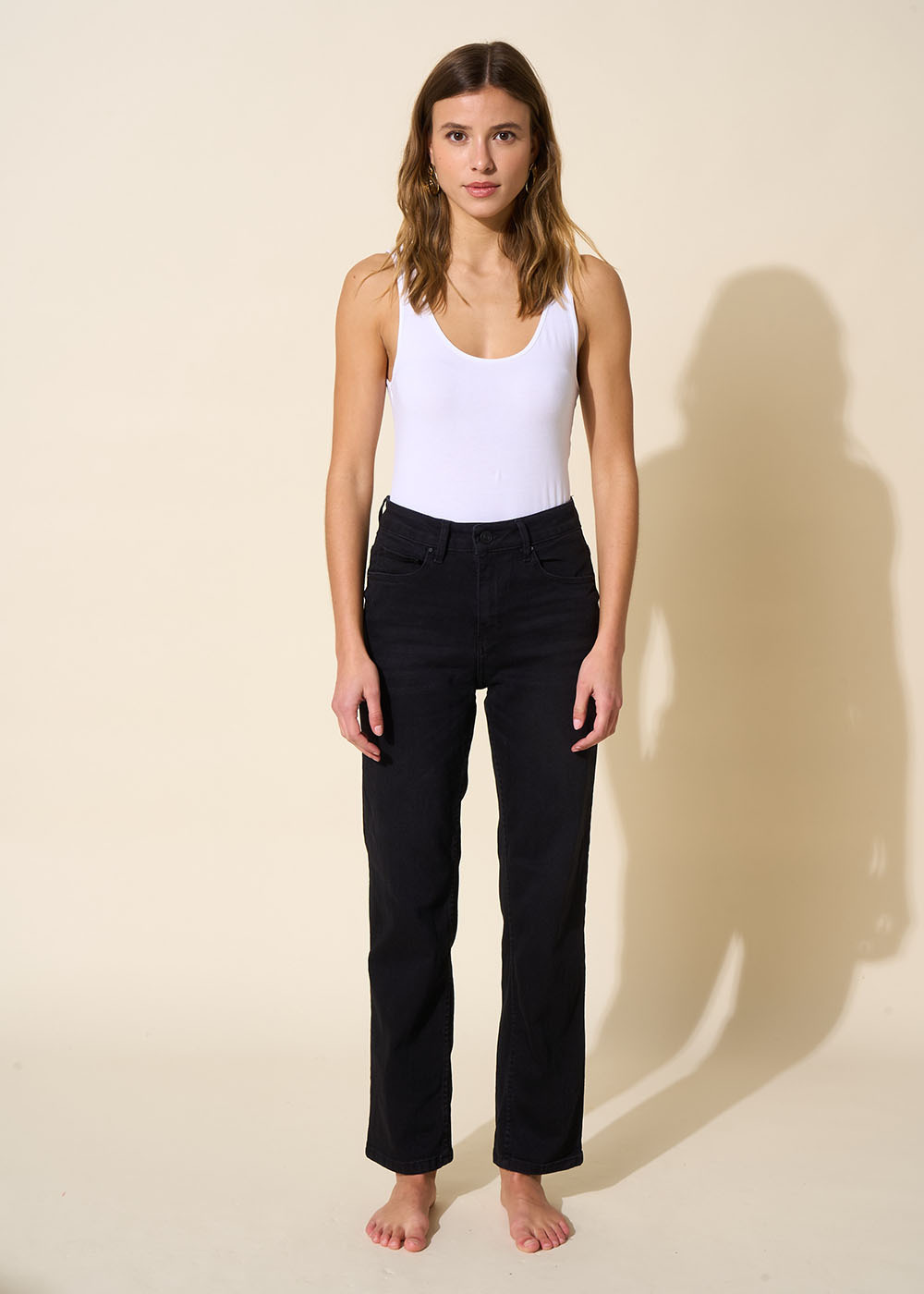 Le jean DEBBY adopte une coupe droite, simple à porter. Il détient une taille haute et des poches plaquées.