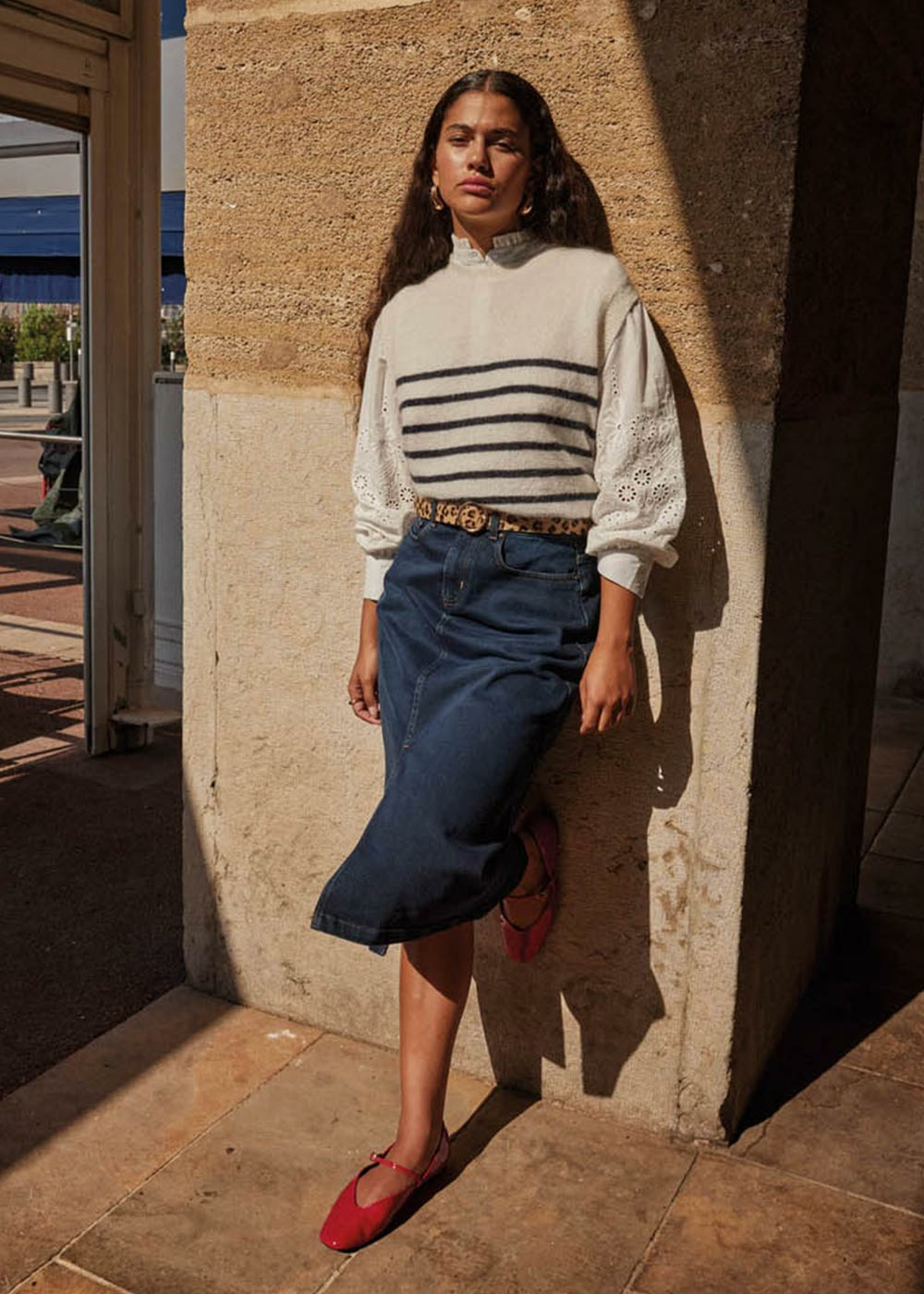 La jupe JUSTINE en jean mi-longue combine une coupe élégante avec une fonctionnalité pratique. Elle est dotée d'une fente sur le devant qui ajoute une touche de modernité, ainsi que de cinq poches pour plus de commodité. Ce modèle est parfait pour un look à la fois décontracté et raffiné.
