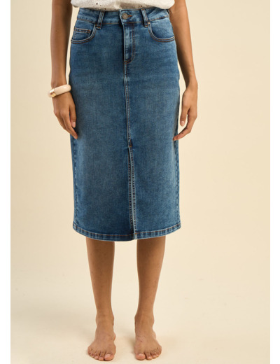 La jupe en jean JAFA midi offre une coupe droite élégante et une longueur mi-mollet parfaite pour un style polyvalent. Avec sa taille à passants, ses poches pratiques et sa fente avant discrète, elle allie confort et fonctionnalité. Portez-la avec un t-shirt et des baskets pour un look casual, ou une blouse et des bottines pour une tenue chic.