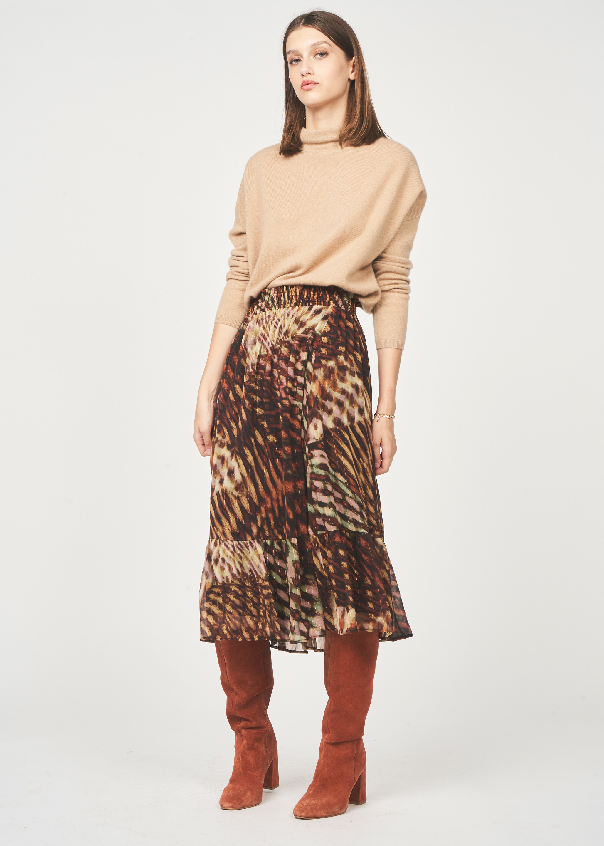 Tout le chic d'une jupe midi avec un confort incroyable. La jupe à imprimé JABATA allie féminité et aisance absolue grâce à sa coupe fluide et à sa taille élastiquée. Cette jupe tournoie avec élégance et accompagne tous vos mouvements.
