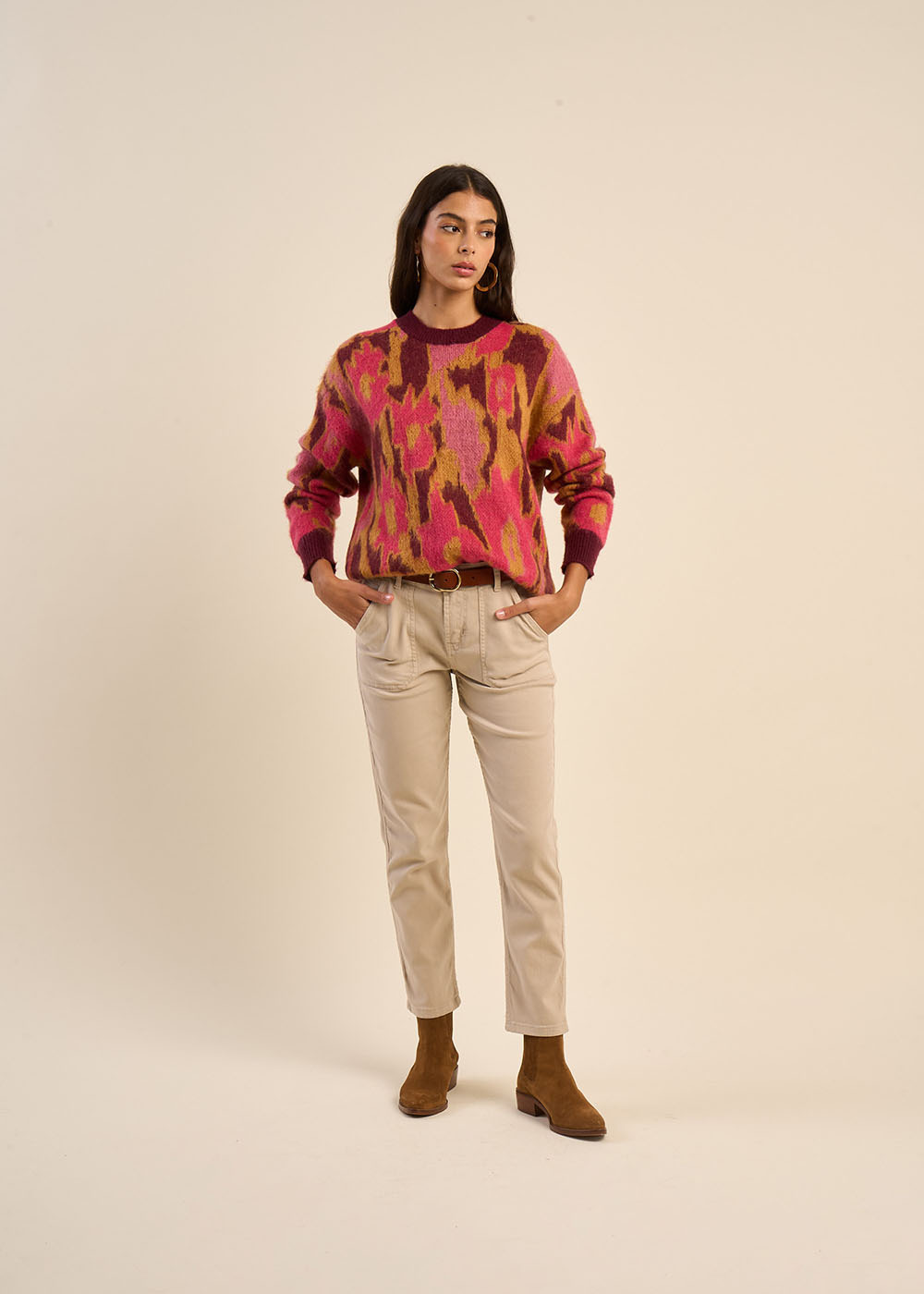 Le pantalon PERACLES décliné en différents coloris adopte une coupe boyfriend et une taille médium. Il est pourvu de poches plaquées italiennes sur le devant et de poches plaquées au dos. Portez le avec un pull uni en cachemire.