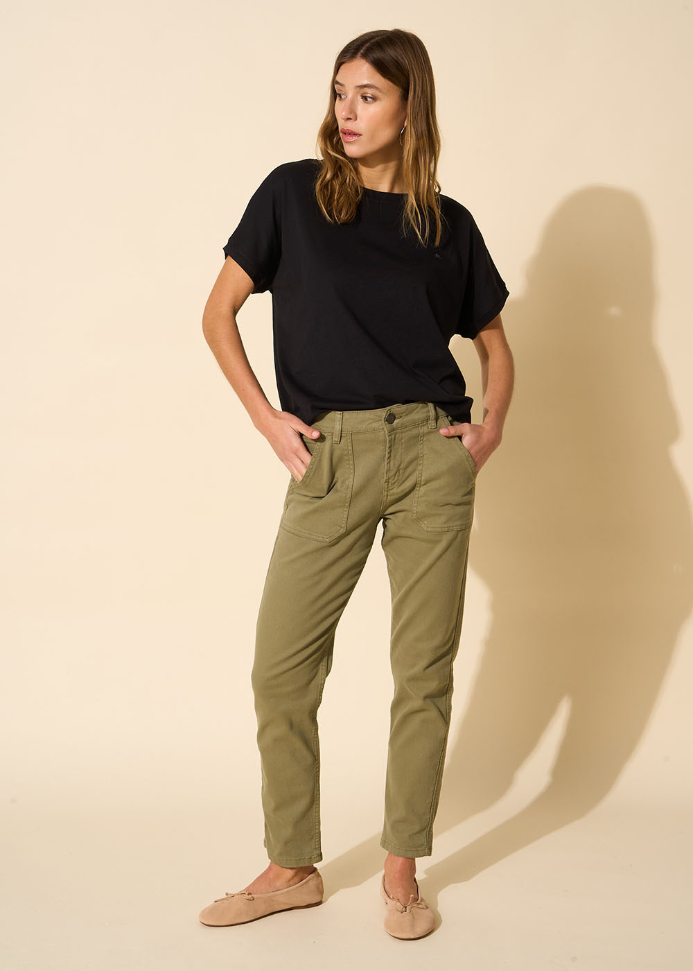 Le pantalon PERACLES décliné en différents coloris adopte une coupe boyfriend et une taille médium. Il est pourvu de poches plaquées italiennes sur le devant et de poches plaquées au dos. Portez le avec un pull uni en cachemire.