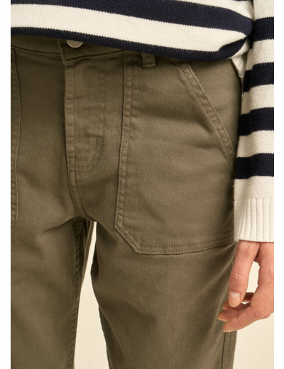 Le pantalon PERACLES décliné en différents coloris adopte une coupe boyfriend et une taille médium. Il est pourvu de poches plaquées italiennes sur le devant et de poches plaquées au dos. Portez le avec un pull uni en cachemire.
