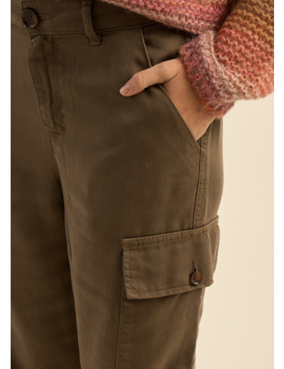 Le pantalon CLELIE, l'allié parfait pour un quotidien actif. Sa coupe cargo, associée à la douceur du tencel, offre un confort absolu. Les poches plaquées sur les côtés, fermées par des boutons pression et des rabats, ajoutent une touche fonctionnelle et stylée. Un indispensable du vestiaire féminin, parfait pour un look à la fois décontracté et tendance.
