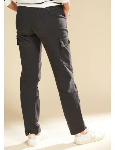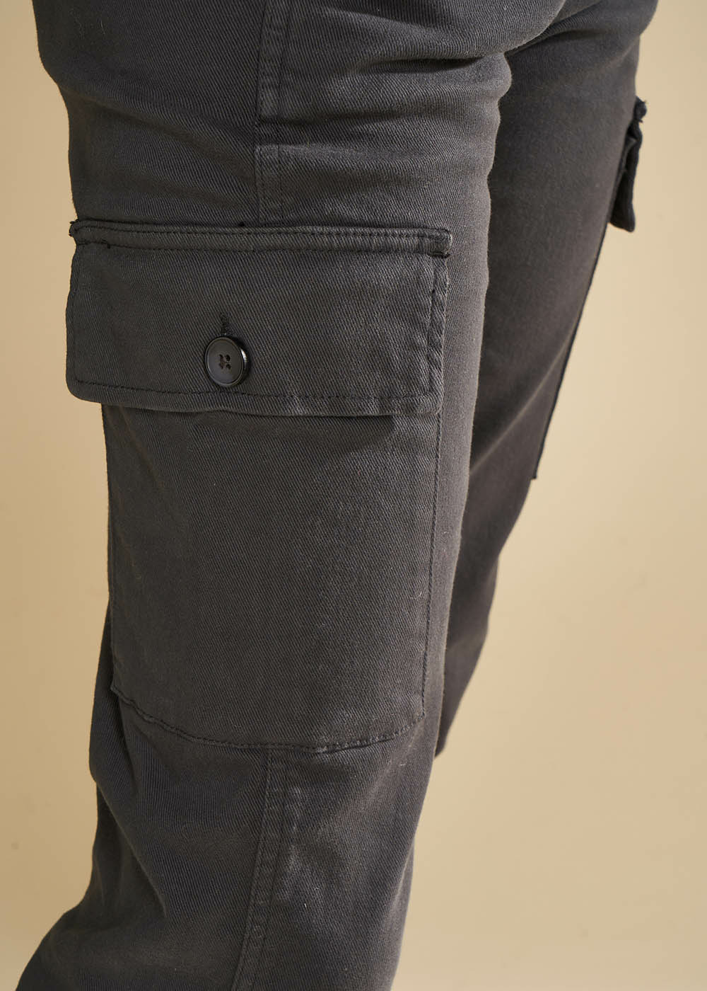 Le pantalon PARGO se distingue par sa coupe cargo décontractée. Il adopte une taille haute et deux poches plaquées à rabats sur les côtés. Portez-le avec un pull uni.