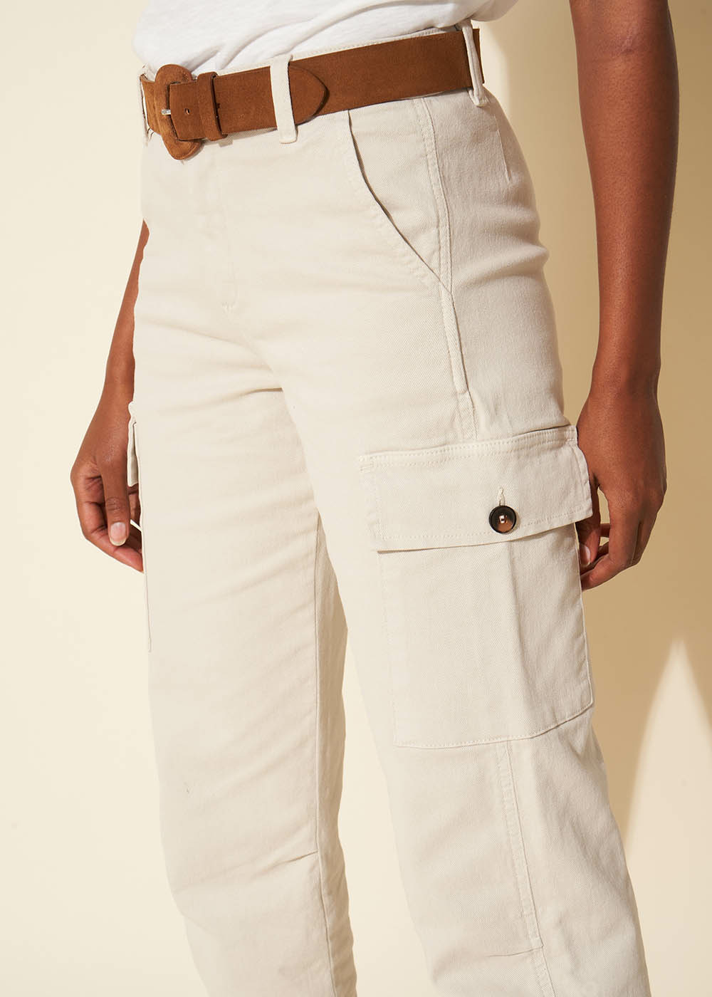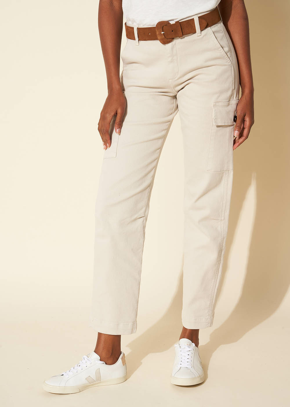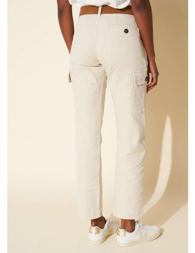 Le pantalon PARGO se distingue par sa coupe cargo décontractée. Il adopte une taille haute et deux poches plaquées à rabats sur les côtés. Portez-le avec un pull uni.