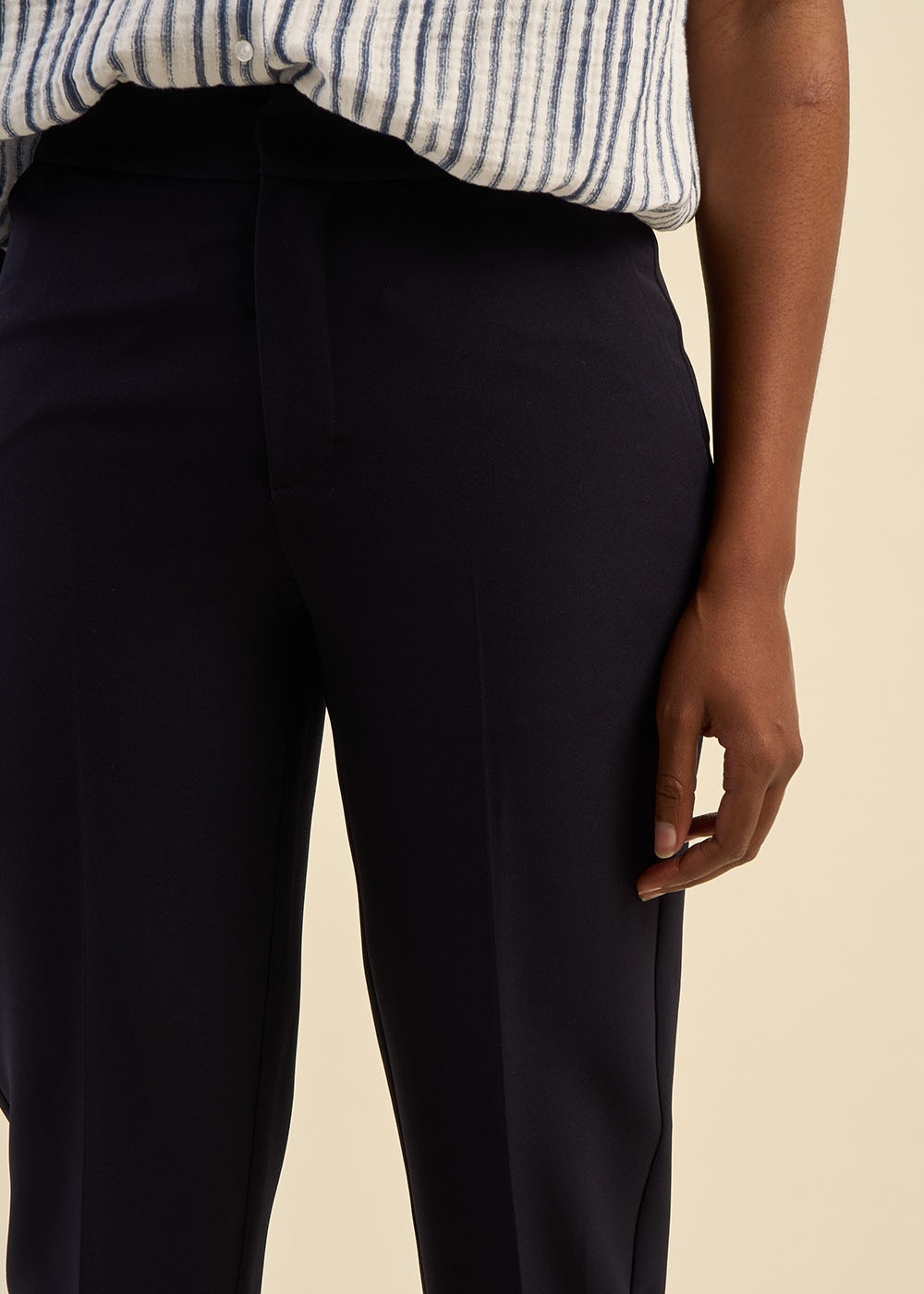 Doté d’un pli préformé à l’avant, il structure la jambe avec élégance, tandis que la poche arrière passepoilée ajoute un détail sophistiqué. Une pièce incontournable pour celles qui recherchent style et aisance au quotidien.