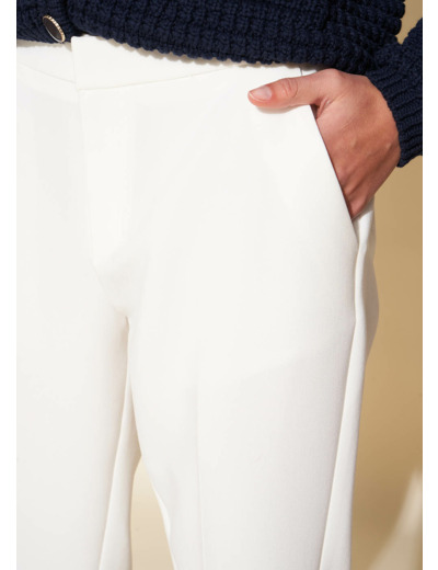 Le pantalon de tailleur PAROLA se portera aussi bien pour aller au bureau que pour vous rendre en soirée. Il détient une coupe droite une taille élastiquée au dos et des poches italiennes.