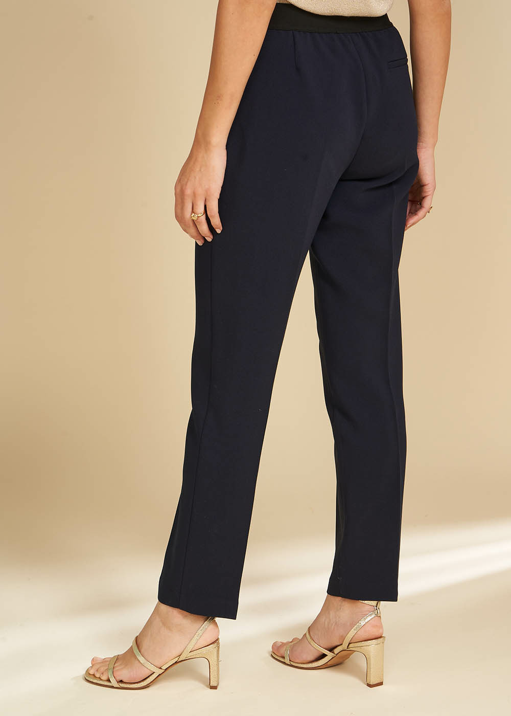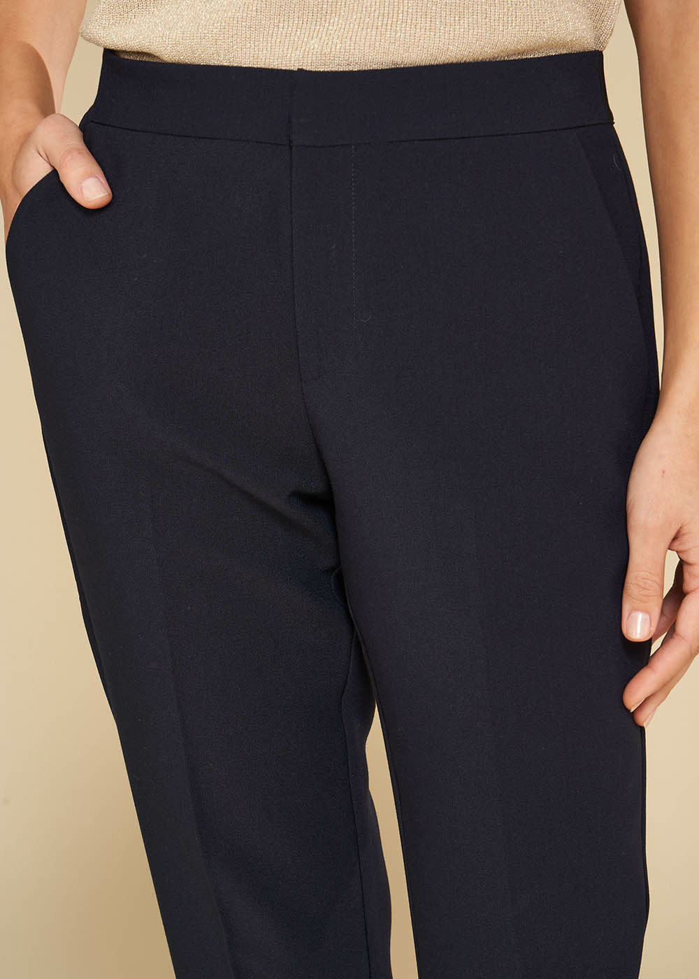 Le pantalon de tailleur PAROLA se portera aussi bien pour aller au bureau que pour vous rendre en soirée. Il détient une coupe droite une taille élastiquée au dos et des poches italiennes.