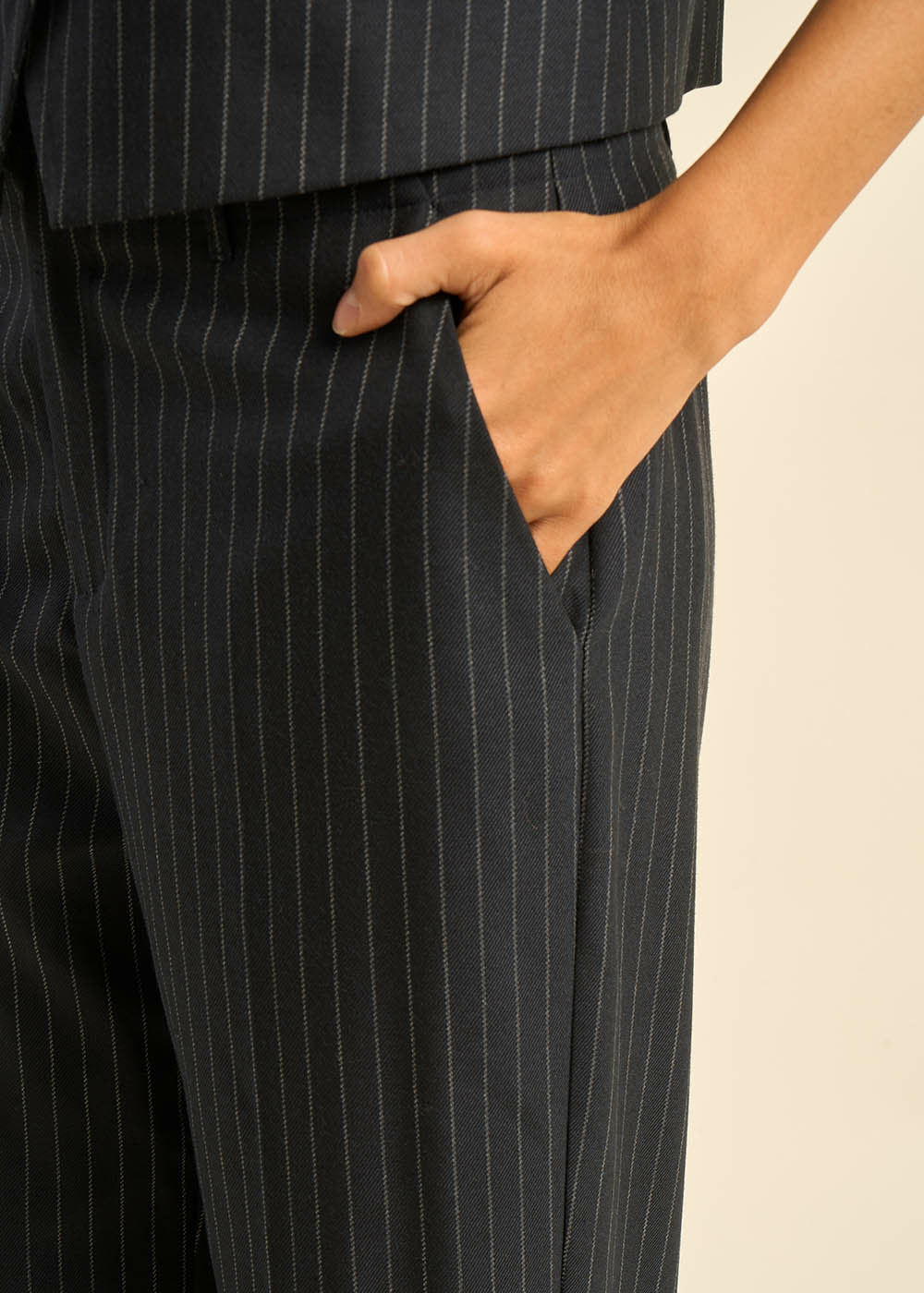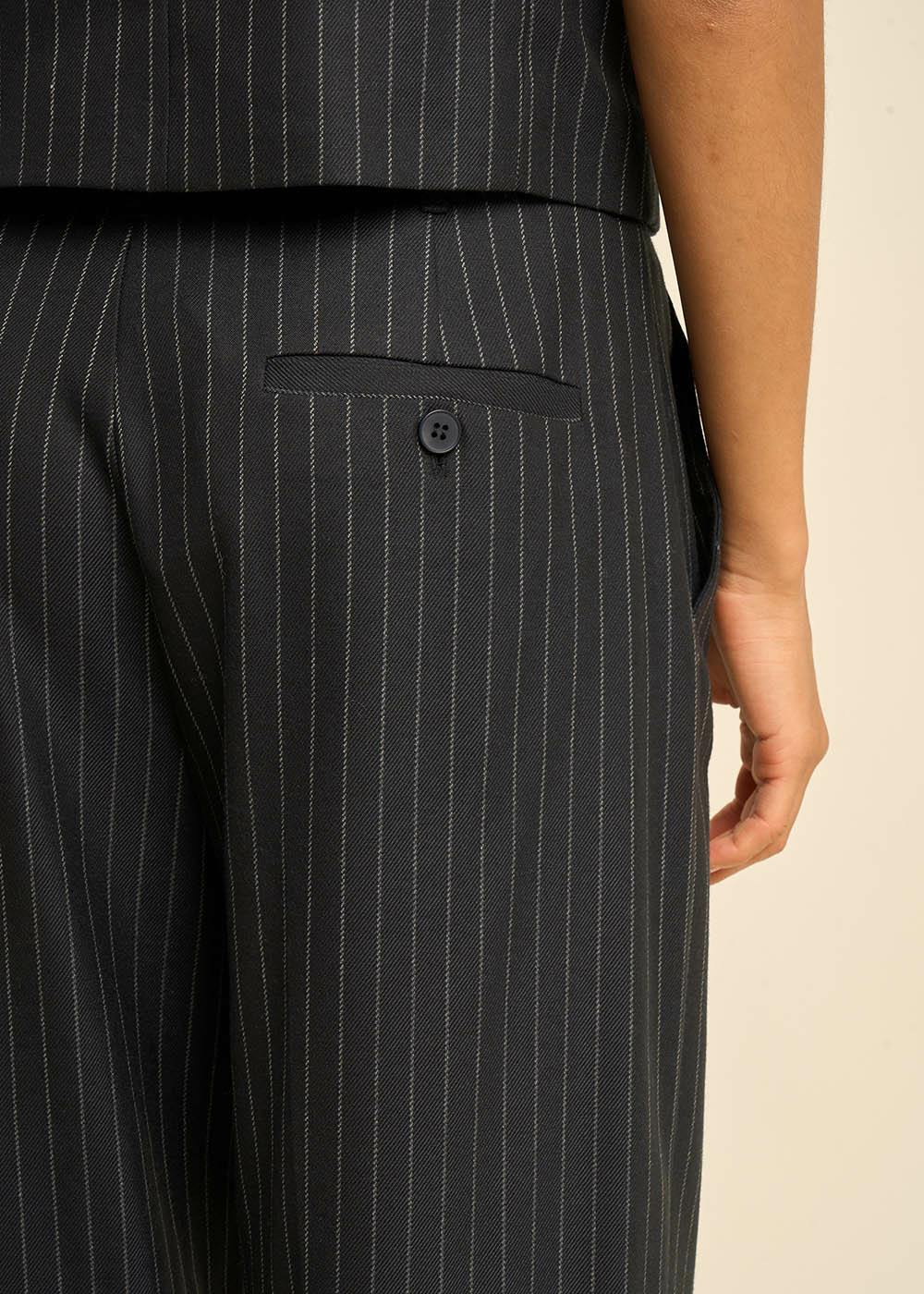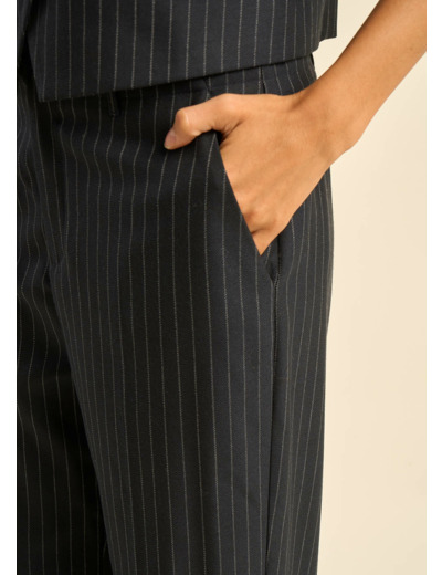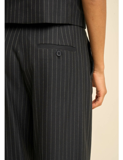 Découvrez notre pantalon PHILY à rayures tennis, taille haute et jambes larges, avec des pinces et plis sur le devant pour une allure sophistiquée. Les poches à l'italienne et la petite poche passepoilée à l'arrière ajoutent une touche pratique et élégante. Associez le avec le gilet GREENWICH et la veste de costume VERMONT dans la même matière pour créer un costume trois pièces raffiné et très élégant. Parfait pour un look chic et contemporain en toutes occasions.