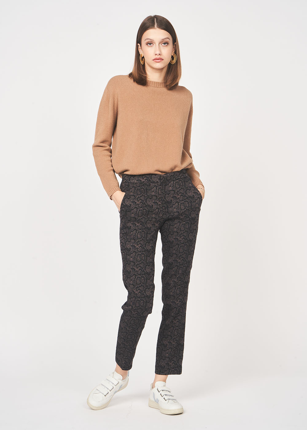 Le pantalon de ville POKILIA à imprimé python est votre must have pour vos soirées habillées. Il viendra mettre en valeur votre taille avec sa ceinture élastiquée au dos. Il arbore à l'avant 2 poches italiennes et à l'arrière une fausse poche. POKILIA est un pantalon chic qui va créer une jolie silhouette et allonger les jambes par sa coupe cigarette.