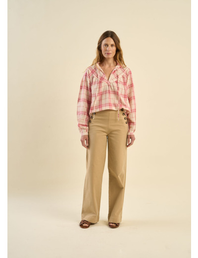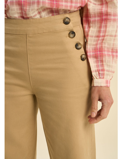 Optez pour une allure chic et contemporaine avec le pantalon POMELO. Sa coupe taille haute et son style à pont soulignent parfaitement la silhouette, tandis que ses jambes larges et ses revers prononcés apportent une touche de raffinement. Les poches plaquées à l’arrière ajoutent un détail pratique et tendance. Ce pantalon est un incontournable pour une garde-robe moderne, alliant confort et élégance avec subtilité.