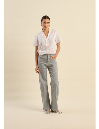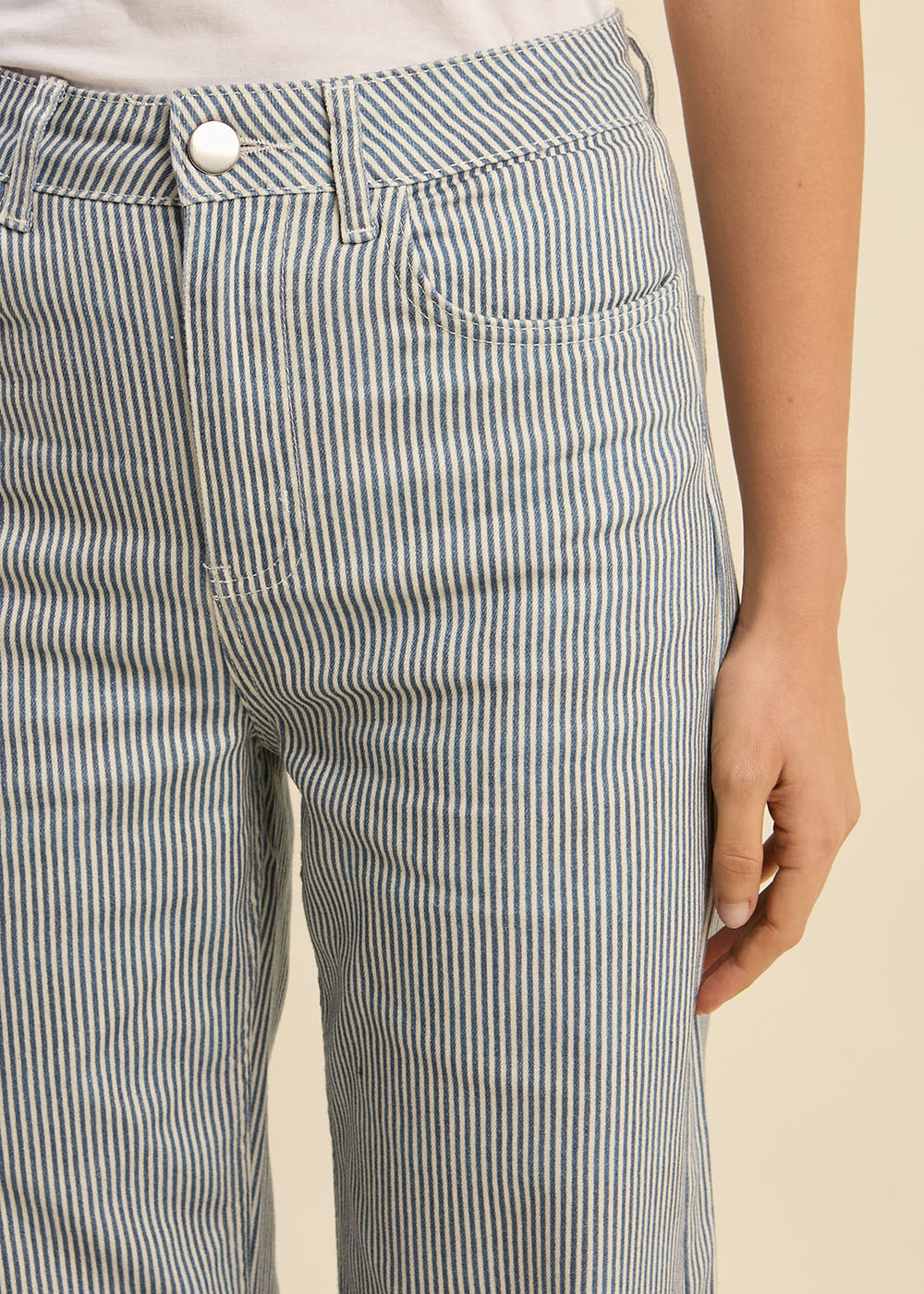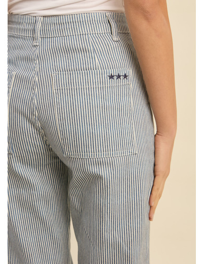 - Pantalon à jambe droite- Taille haute- Poches arrière avec détails 3 étoiles- Fines rayures| Marque | sud express |