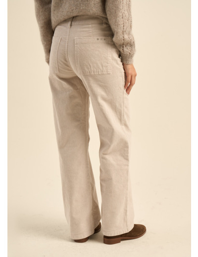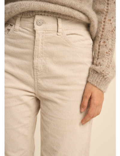 Le pantalon PALOMA, une réinterprétation moderne du pantalon en velours. Sa coupe droite et large, associée à la texture du velours côtelé 11 raies, lui confère un charme intemporel. La taille haute souligne la silhouette et les poches plaquées apportent une touche pratique.