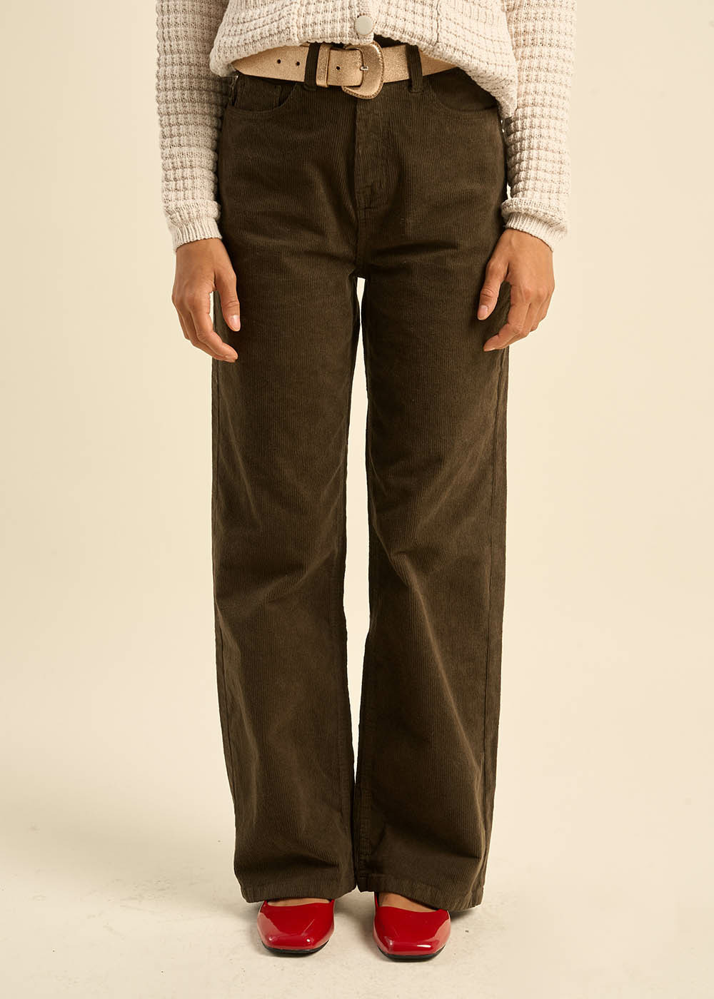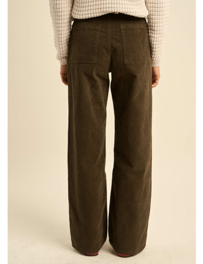 Le pantalon PALOMA, une réinterprétation moderne du pantalon en velours. Sa coupe droite et large, associée à la texture du velours côtelé 11 raies, lui confère un charme intemporel. La taille haute souligne la silhouette et les poches plaquées apportent une touche pratique.