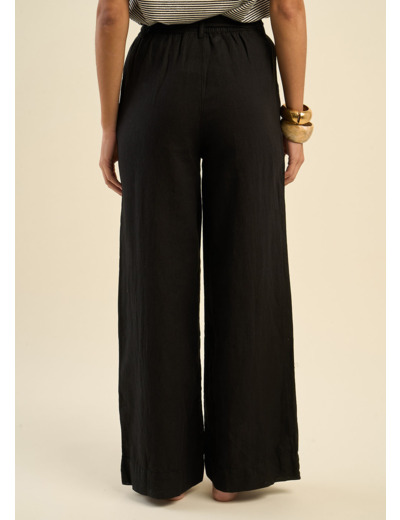 Le pantalon PASTELA est un essentiel de la garde-robe estivale, alliant élégance et confort. Avec sa taille très haute et sa jambe extra-large, il offre une silhouette fluide et allongée. Sa ceinture élastique, accompagnée d’une ceinture à nouer, assure un ajustement parfait tout en ajoutant une touche sophistiquée. Confectionné dans un mélange de coton et de lin, il est à la fois léger et agréable à porter. Polyvalent, il se porte aussi bien en journée avec un t-shirt décontracté qu’en soirée avec une blouse élégante.