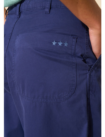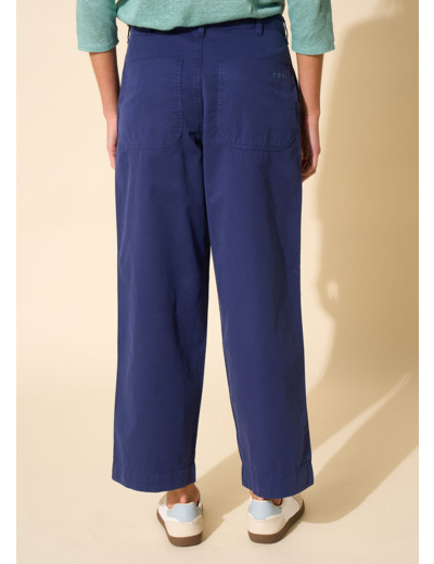 Le pantalon PAMELA se caractérise par sa coupe ample et sa taille moyenne. Il est agrémenté de poches italiennes à l'avant et de deux poches plaquées à l'arrière. Fabriqué dans une popeline craquante, il s'associe parfaitement avec une blouse blanche délicate.