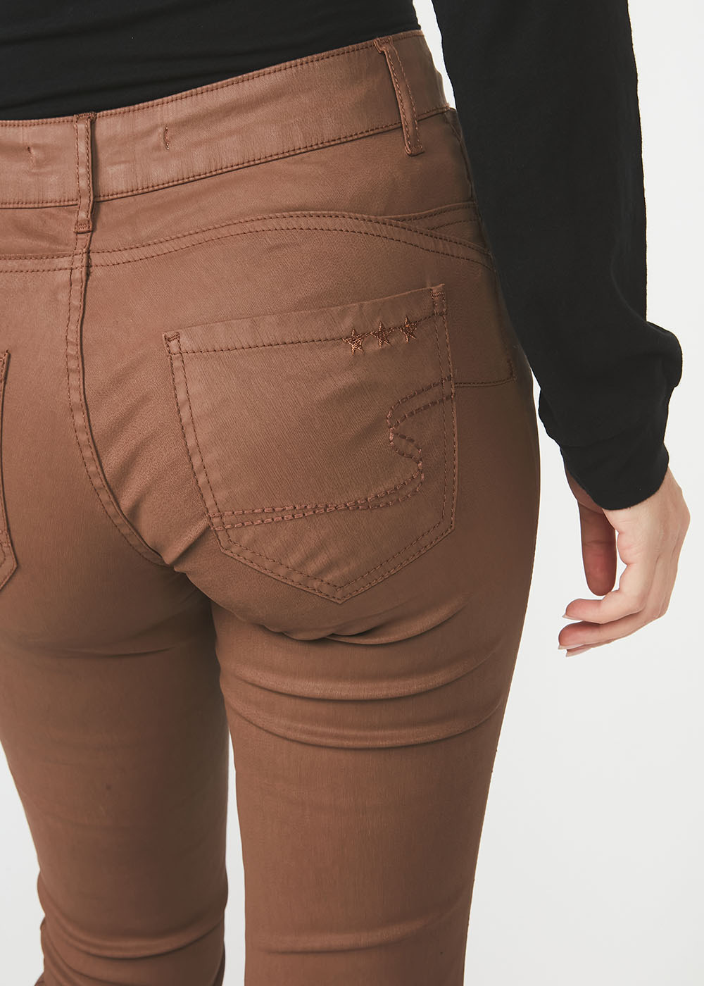 Le pantalon PUPI est un pantalon chic et confortable. Sa matière effet enduit lui donne un aspect élégant et moderne. Sa taille médium et sa coupe slim lui confèrent une coupe flatteuse. Pour un look urbain portez-le avec une veste en jean.