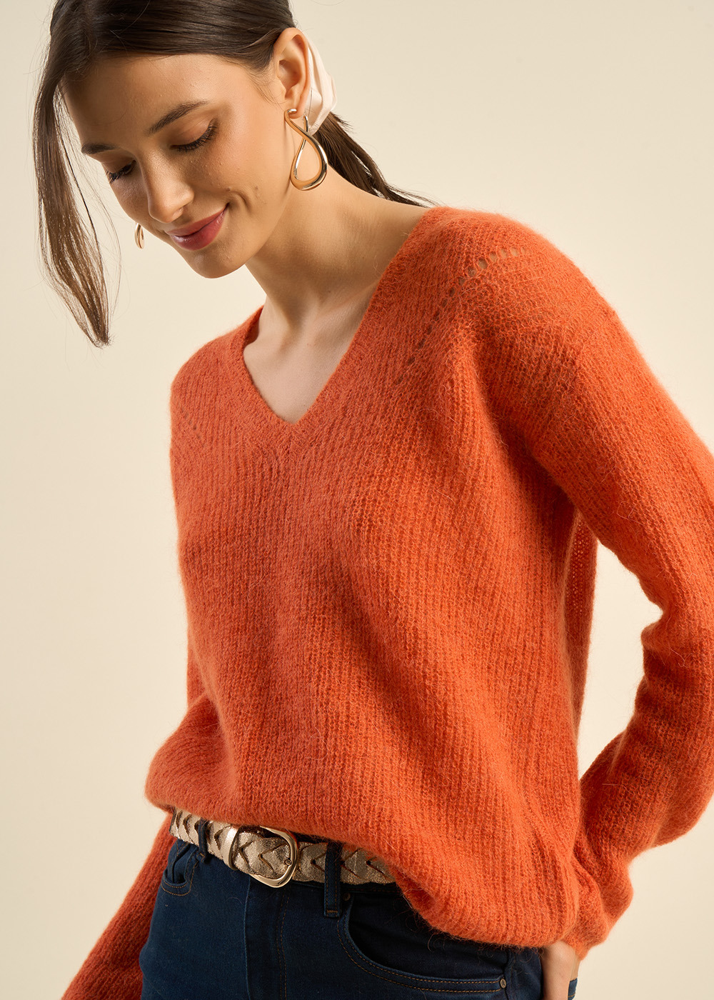 Pull à col V en mohairs et Alpaga