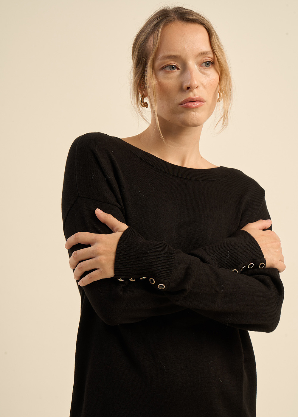 RAMON, la robe pull parfaite pour un look décontracté et chic. Sa longueur courte et sa matière douce en font une pièce incontournable du vestiaire féminin. Le décolleté en V dans le dos et les manches longues lui donnent une allure élégante. Les 5 boutons fantaisie sur les poignets apportent une touche d'originalité à cette pièce intemporelle.