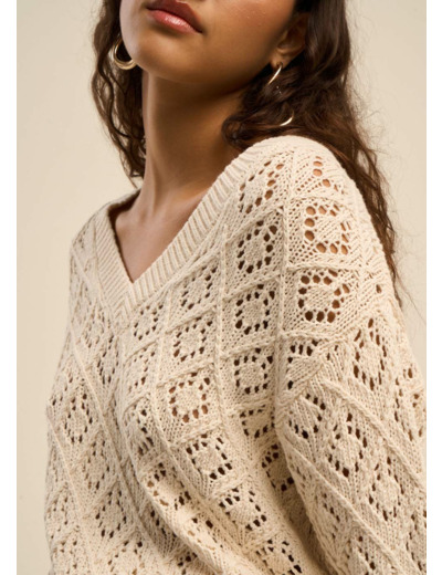 Pull ajouré col V