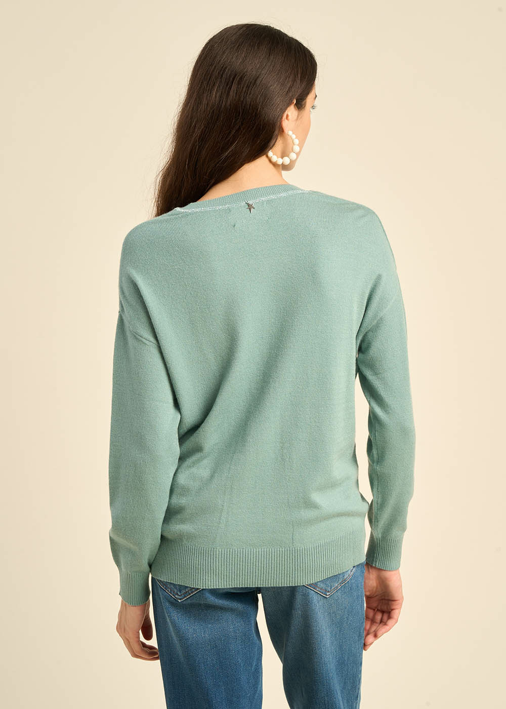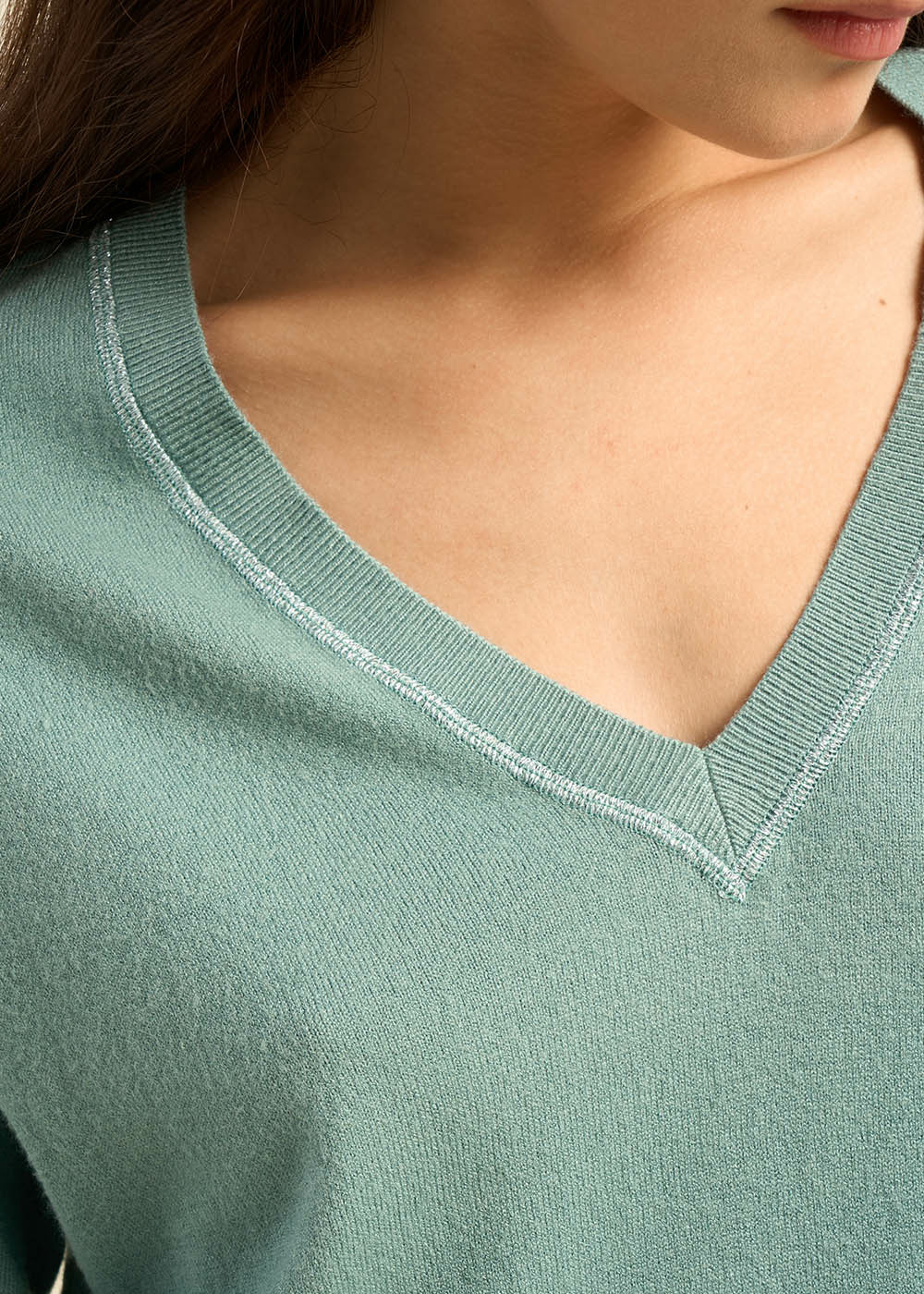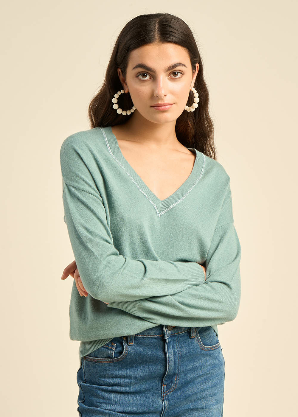 MARSENANO, le pull en viscose qui allie douceur et élégance. Sa maille fine et fluide, associée à une forme ample et droite, offre un confort absolu. L'encolure en V et le jeu de tricotage sur les épaules apportent une touche d'originalité. Disponible dans une palette de sept couleurs, il s'adapte à tous les styles.