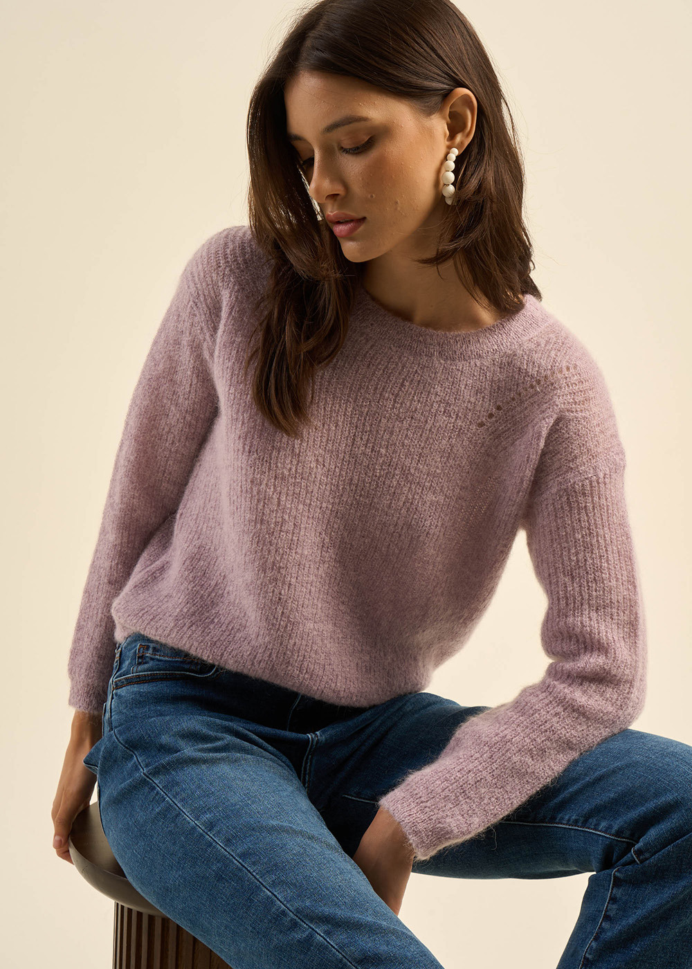 Le pull MONCOEURO est le partenaire parfait pour allier chaleur et douceur, grâce à sa composition en mohair. Avec son col rond et ses manches longues ornées de détails tricotés distinctifs, il ajoute une touche de style raffinée à votre garde-robe. Portez-le rentré dans un pantalon de tailleur pour une élégance sophistiquée, ou associez-le à un jean pour une allure décontractée et confortable.