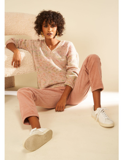 Le pull MARISSA est remarquable grâce à ses détails en sequins qui ajoutent une touche d'éclat à son design. Il est doté de manches longues et d'un col en V. Pour un look élégant et décontracté associez-le à un jean taille haute. Avec ce pull vous pouvez apporter une touche de glamour à votre tenue tout en restant confortable.