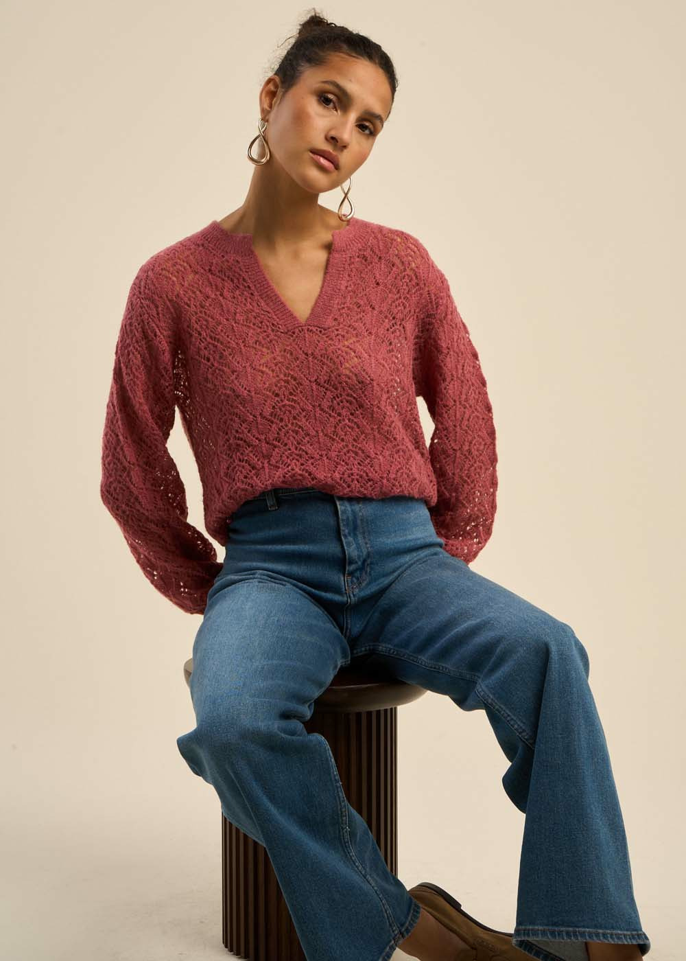 Le pull MALIBA allie confort et style avec sa coupe droite et son col tunisien élégant. Son jeu de points fantaisies apporte une touche de créativité, tandis que les finitions en bords-côtes au bas du vêtement et aux poignets assurent une coupe soignée. Sa longueur sous la fesse en fait une pièce parfaite pour un look à la fois décontracté et raffiné. Un pull qui se distingue par ses détails subtils et son allure moderne.