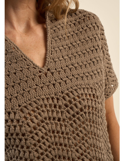 Découvrez notre pull MILA, une pièce délicate et raffinée qui allie féminité et légèreté. Confectionné en crochet, il offre une texture ajourée subtilement travaillée pour un look bohème et élégant. Son col rond avec une ouverture en V apporte une touche de modernité, tandis que ses manches courtes en font un allié parfait pour la mi-saison. Facile à porter, il se marie aussi bien avec un jean casual qu’une jupe fluide pour une silhouette chic et décontractée.