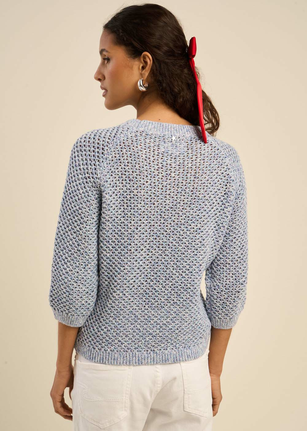 Le pull MATELYS se démarque par son allure unique et lumineuse. Sa maille multicolore agrémentée de détails en lurex brillant lui apporte une touche d’éclat, idéale pour rehausser vos tenues. Doté d’un col rond et de manches raglans 3/4, il conjugue confort et modernité. Son tricotage fantaisie ajouré réalisé en coton mélangé multicolore en fait une pièce légère et agréable à porter. Associez-le à un jean denim pour un look casual et pétillant.