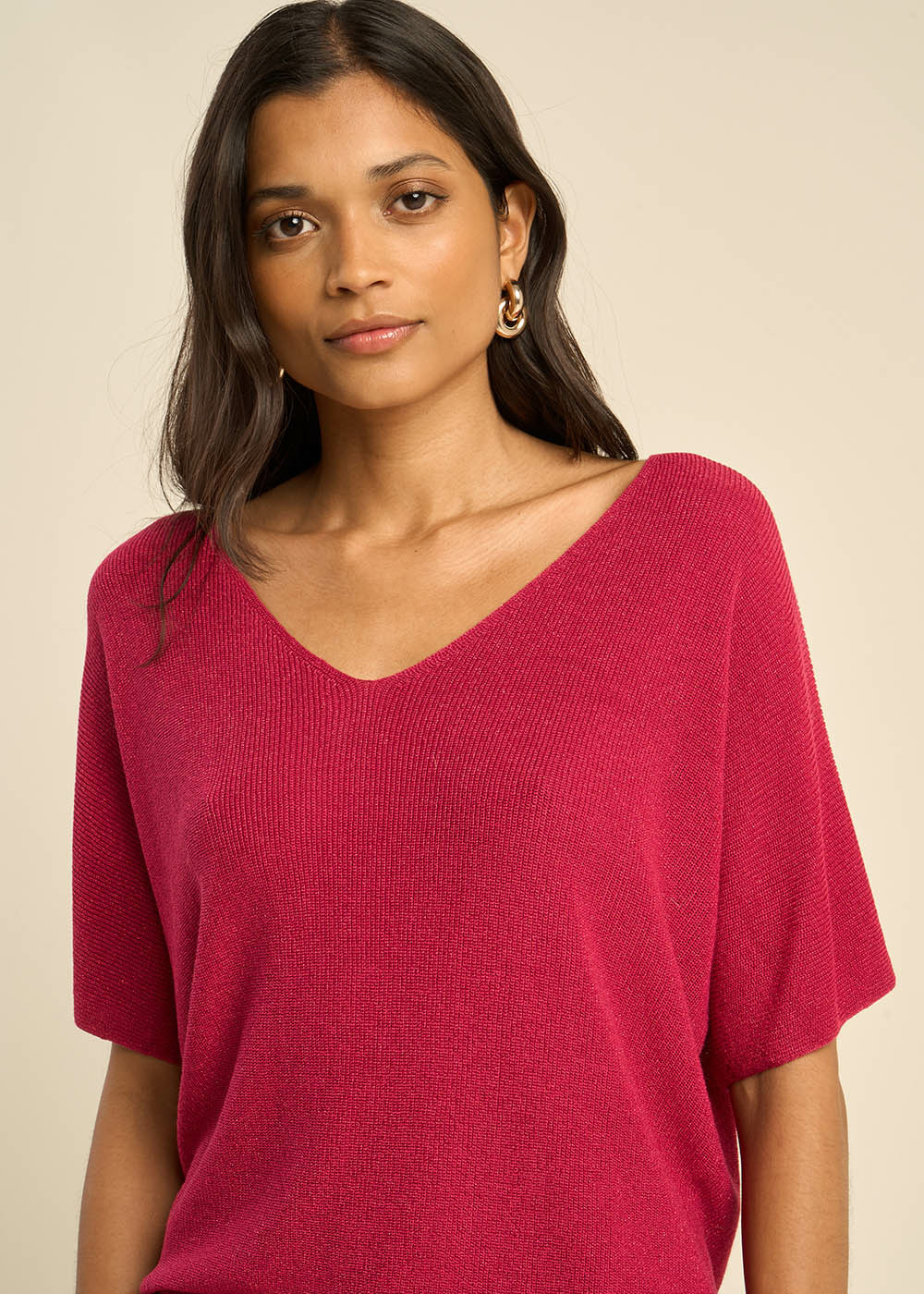 Le pull en maille fine MIKOLAYX est un incontournable dans la garde-robe. Avec ses manches courtes et son col en V il se distingue par un fil lurex qui ajoute une touche d'élégance à la pièce.