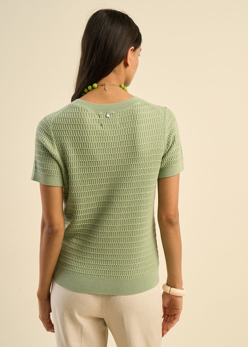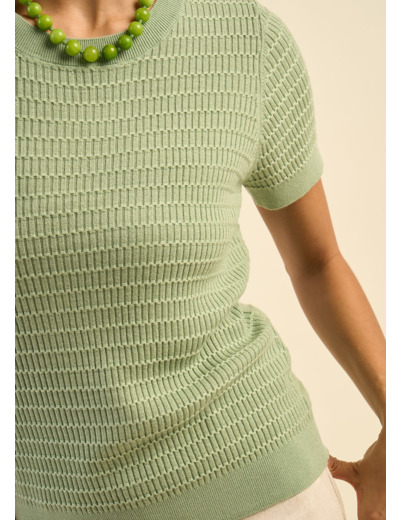 Laissez-vous charmer par notre pull MAXENCE, un modèle à manches courtes qui se distingue par son subtil jeu de points. Confectionné dans une fine jauge, il offre une texture légère et agréable à porter. Sa finition en bord-côte soigneusement travaillée apporte une touche d'élégance et de modernité. Idéal pour les mi-saisons, il se porte facilement avec toutes vos tenues, alliant confort et style.