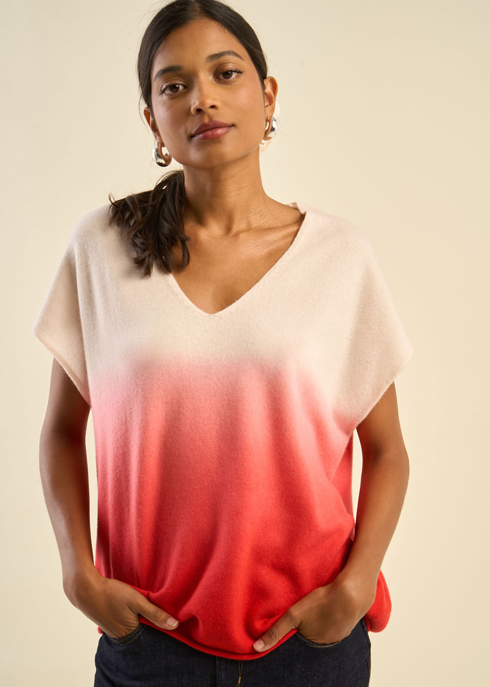 Le pull MATIAX est une pièce élégante qui se distingue par sa coupe carrée moderne et son style minimaliste. Son effet "dip and dye" ajoute une touche de caractère et de tendance. Avec son col V et ses manches courtes, il allie confort et raffinement. Confectionné en 100% cachemire, il offre une douceur inégalée et une qualité exceptionnelle.