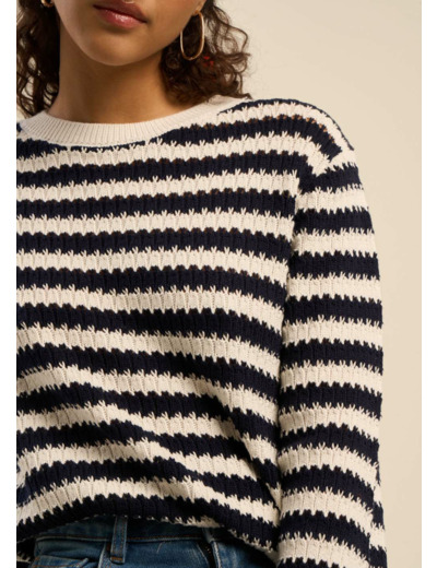 Le pull MACEO, confectionné en 100 % coton, incarne l'élégance décontractée avec sa coupe droite et son motif marinière intemporel. Son col rond, orné d'une finition en bord-côte, et son jeu de points subtil apportent une touche de sophistication. Idéal pour les journées fraîches, ce pull combine confort et style avec brio.