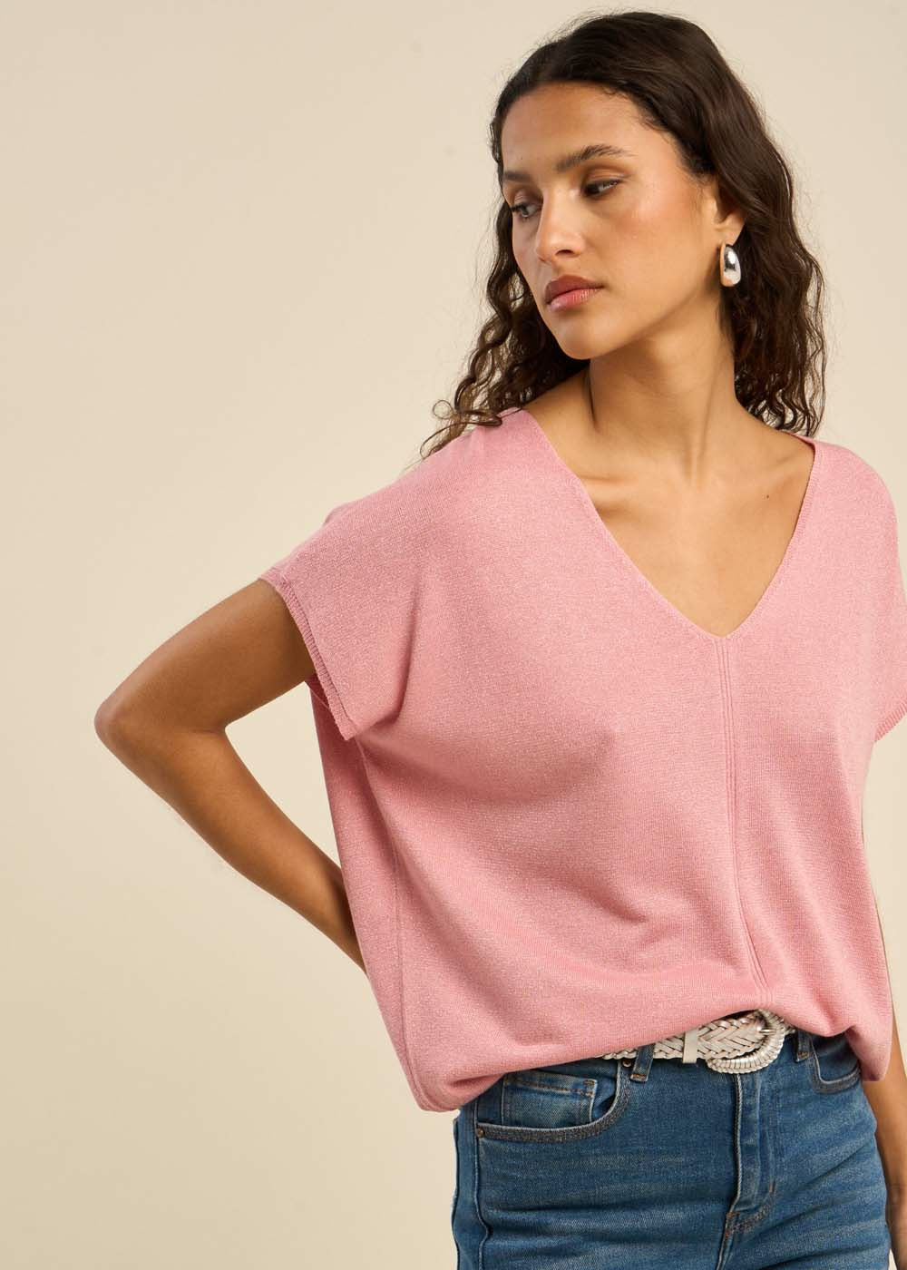 Pull oversize à col V et manches courtes