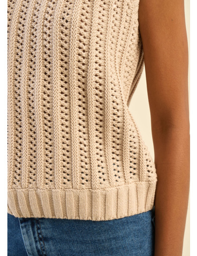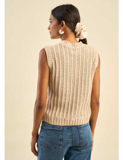 Le pull MIANI est une pièce essentielle pour allier confort et style. Ce pull sans manches au col rond se distingue par son jeu de points subtils qui apporte de la texture et du caractère. La finition bord-côte, délicatement travaillée, ajoute une touche de sophistication tout en garantissant un ajustement parfait. À porter seul ou superposé, il se marie à merveille avec un jean ou une jupe fluide pour un look à la fois moderne et intemporel.