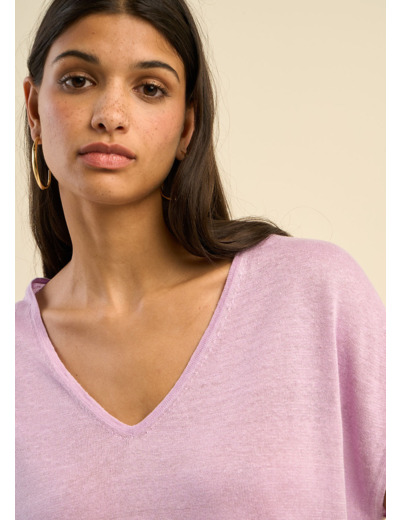 Pull sans manches col V 100% lin